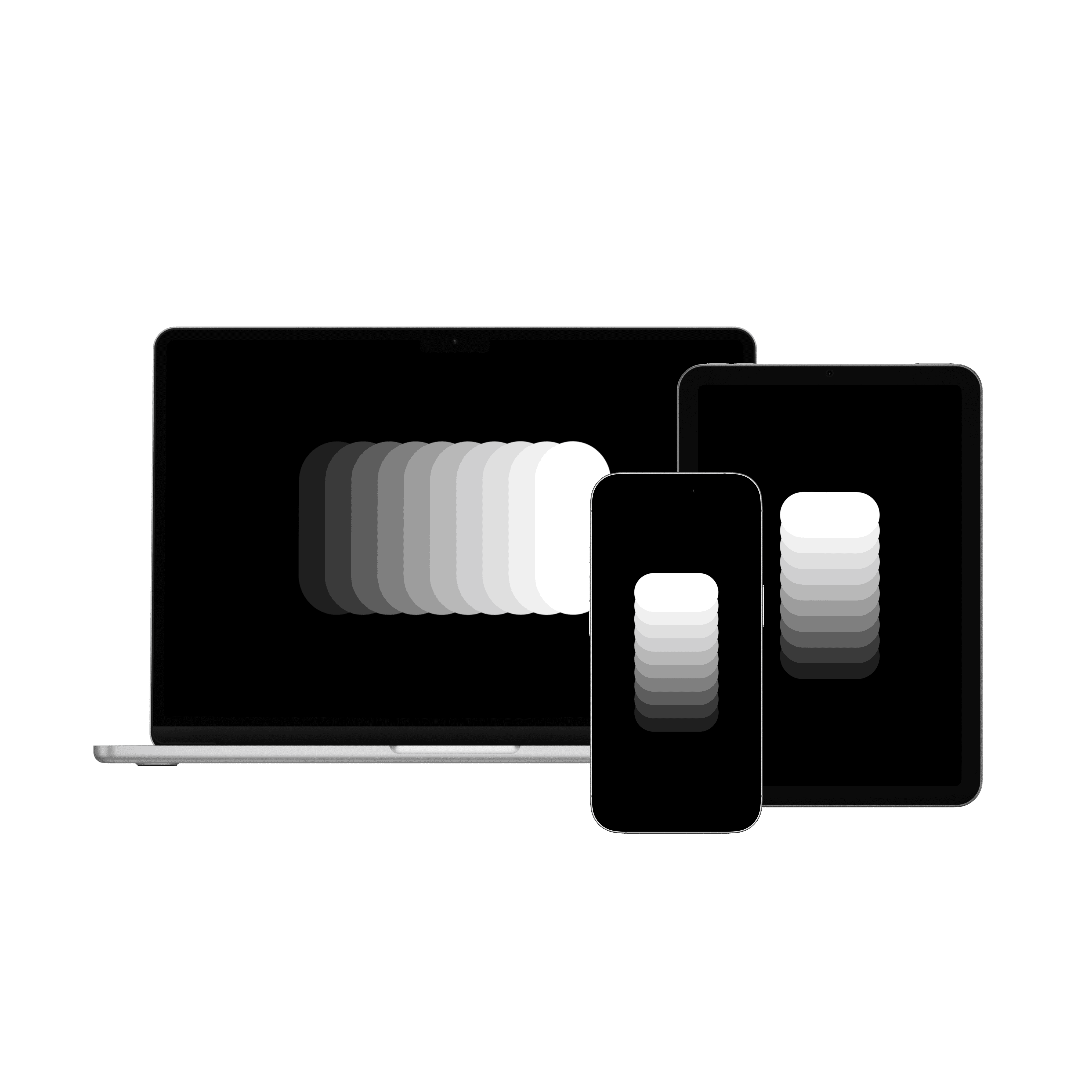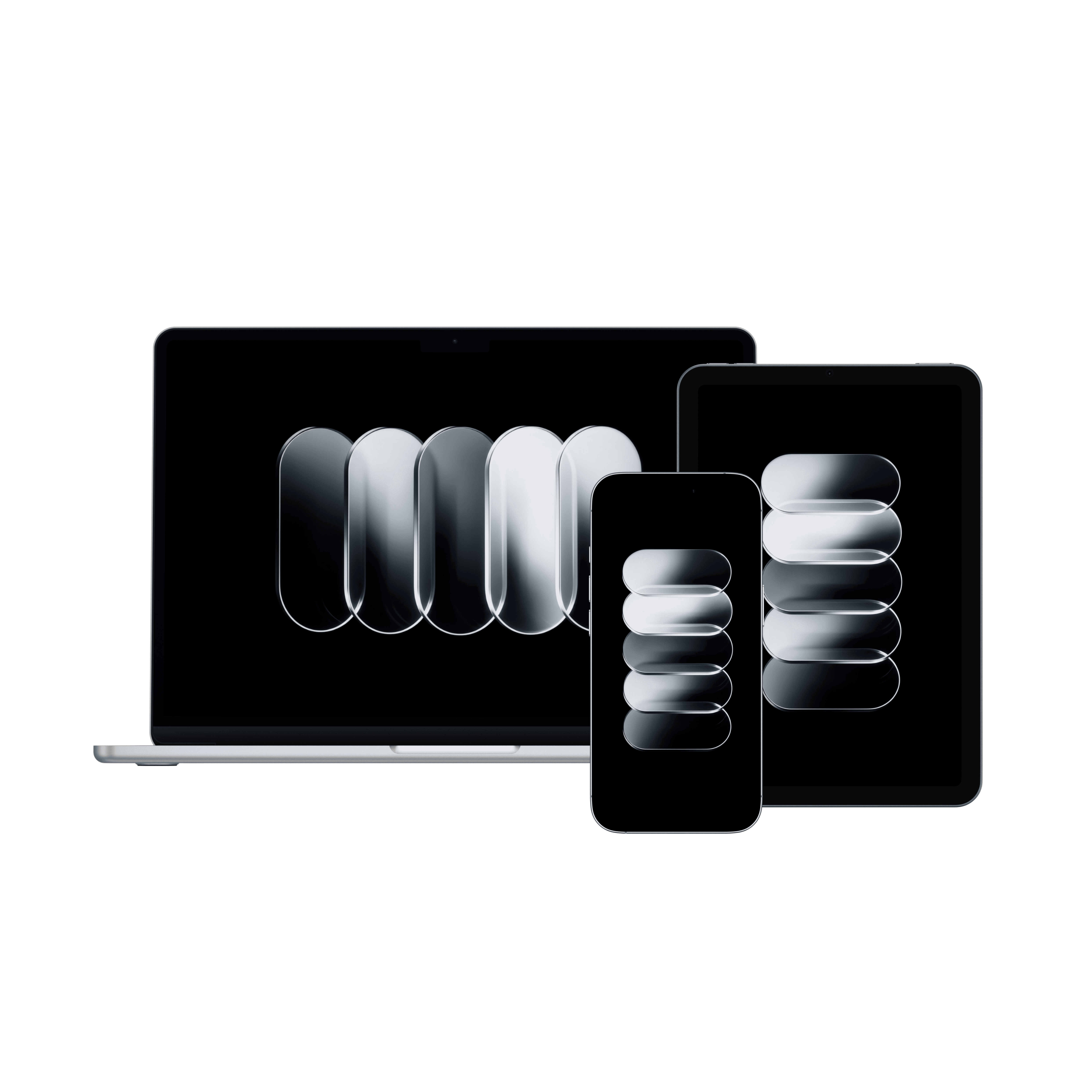 Three soft gradient wallpapers designed for iPhone, iPad, and Mac, each tailored to fit the device perfectly while adding depth and timeless elegance to your screen.