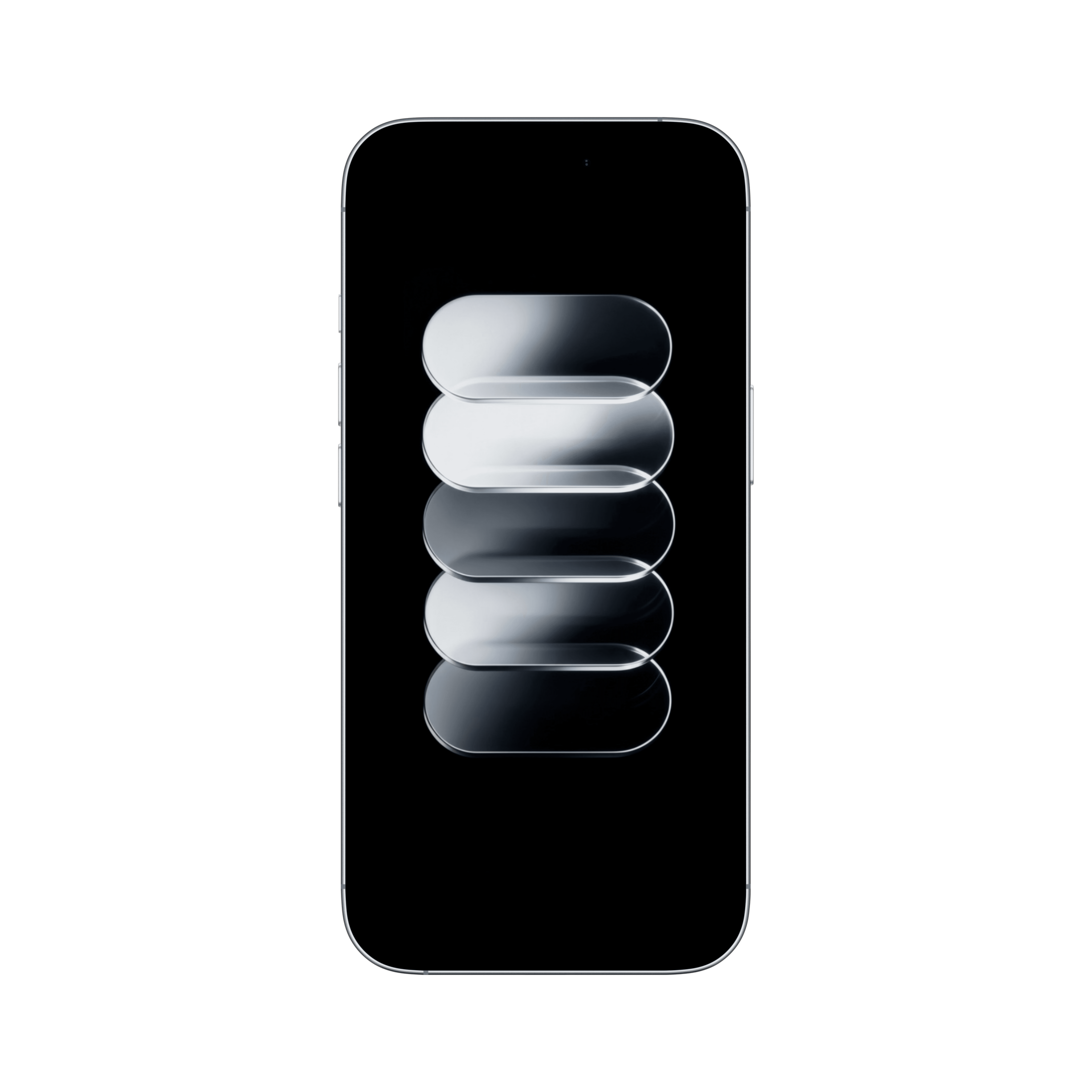 Package of five Liquid Glass wallpapers in silver, orange, and blue tones, designed for iPhone, iPad, and Mac. Each wallpaper adapts perfectly to your device, delivering a smooth glass-like effect, depth, and modern elegance.